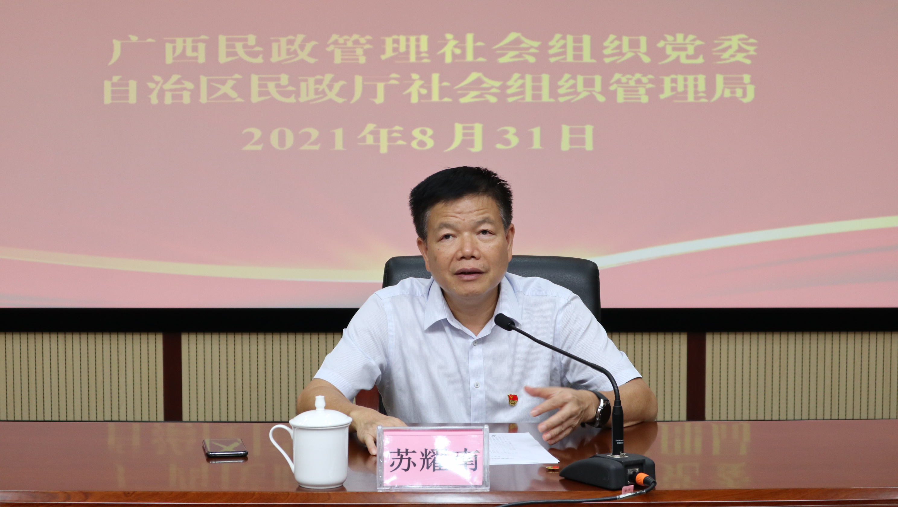 8月31日,广西民政管理社会组织党委、自治区民政厅社会组织管理局召开加强社会组织意识形态工作专题学习会,认真贯彻落实中央和自治区党委关于加强意识形态工作的有关要求,切实加强社会组织领域意识形态工作和网络信息安全。自治区民政厅二级巡视员、广西民政管理社会组织党委书记苏耀南主持会议并讲话。
