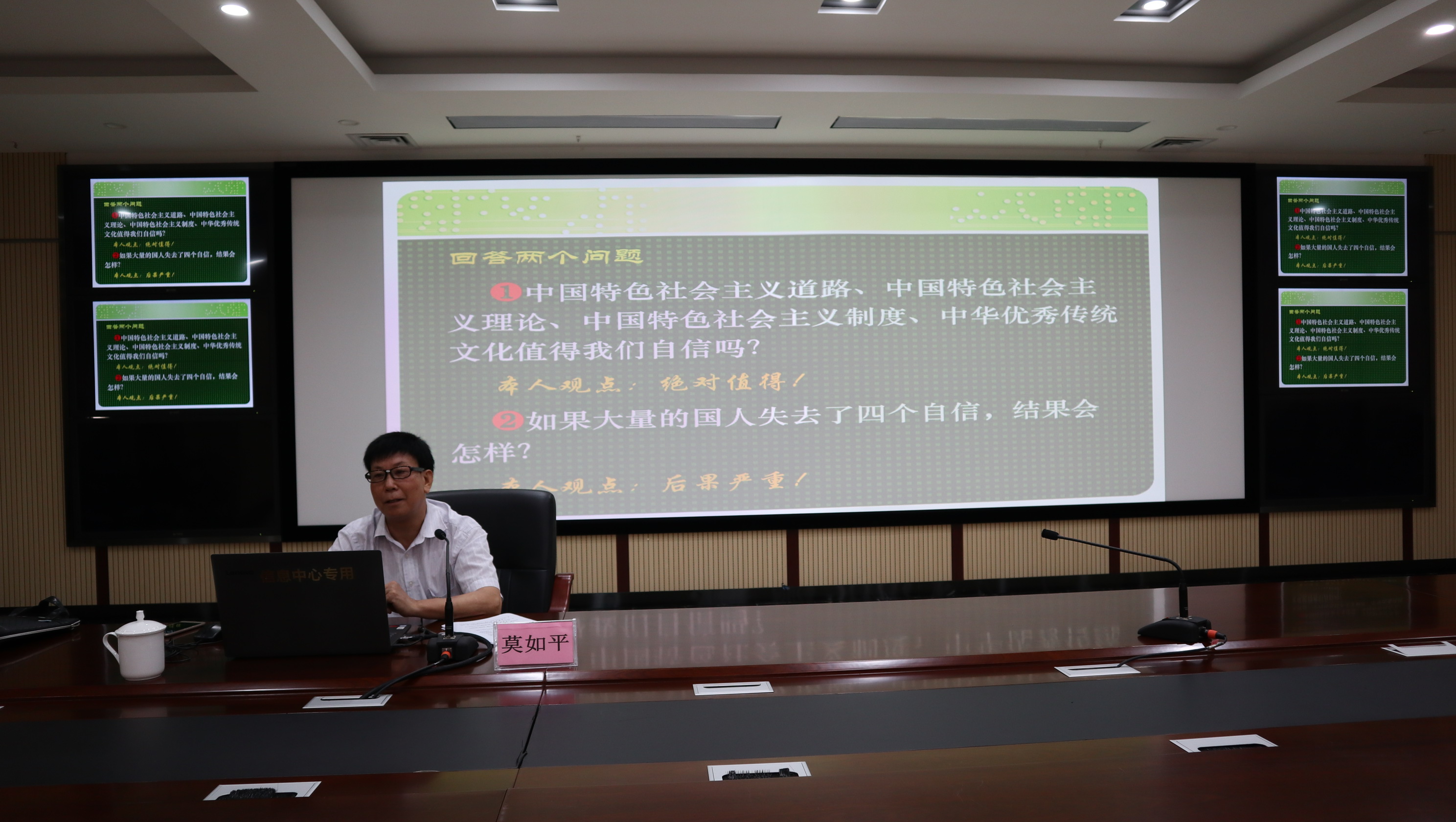 广西信息安全学会党支部委员,广西网络信息安全服务研究院兼职副院长莫如平同志以“坚持四个自信,守护我们的共同家园”为题进行授课