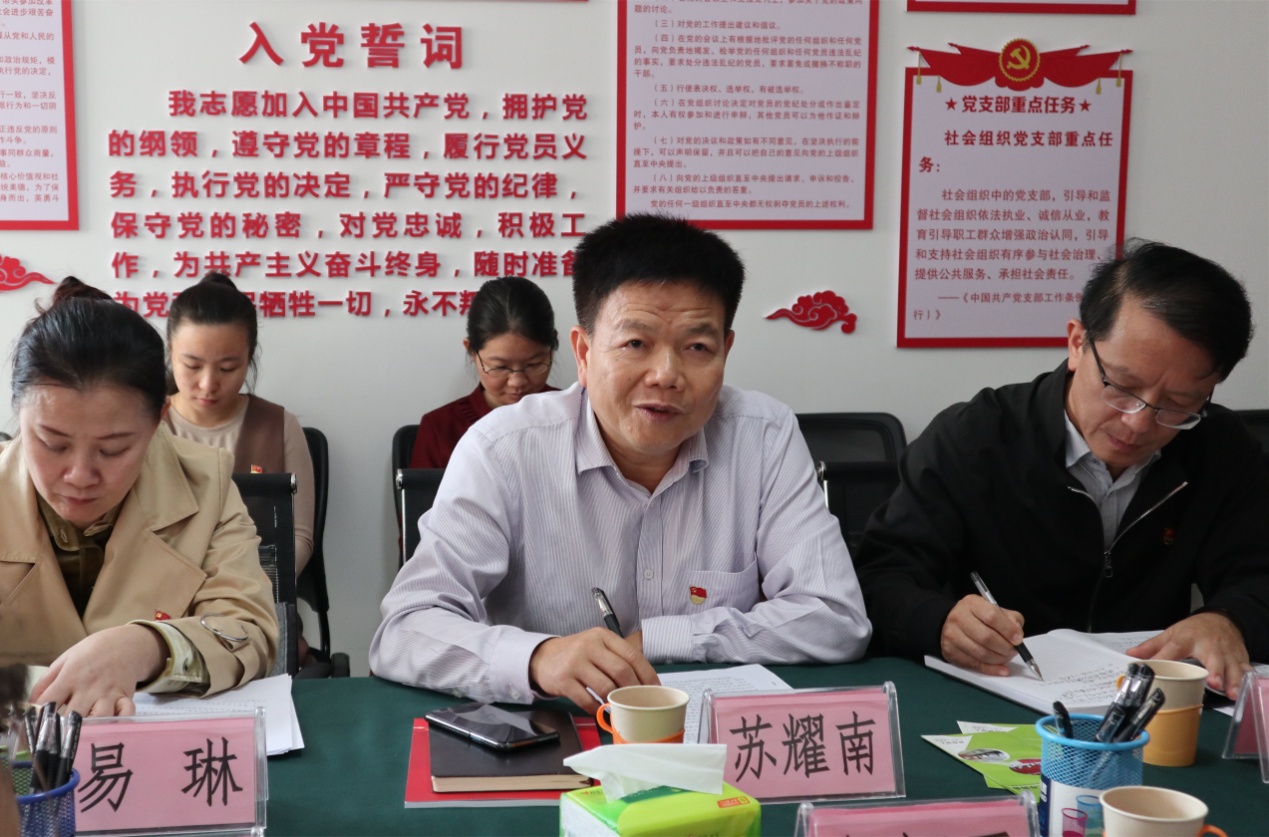 11月4日上午,为深入贯彻习近平总书记“七一”重要讲话精神、抓好党支部标准化建设、推动党史学习教育走深走实,不断提升新时代社会组织党建工作质量。广西民政管理社会组织党委、自治区民政厅社会组织管理局党支部、桂林市社会组织党委和广西社会工作协会联合党支部共同开展“党支部标准化建设”现场调研暨主题党日活动。自治区民政厅二级巡视员、广西民政管理社会组织党委书记苏耀南出席此次活动并讲话。