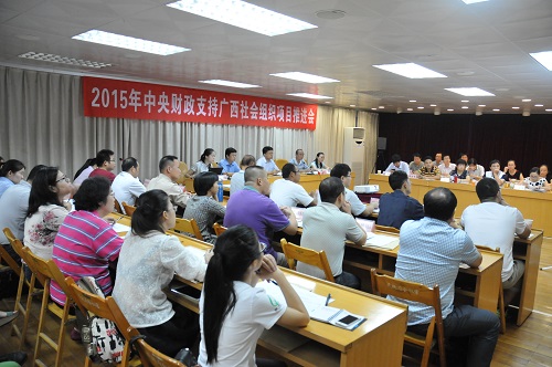 为交流2015年中央财政支持广西社会组织项目执行情况和经验做法,全面完成年内17个项目任务,9月8日,自治区民间组织管理局在南宁组织召开2015中央财政支持广西社会组织参与社会服务项目中期推进会。自治区民间组织管理局和全区14个设区市民管科(办)负责人、17个立项单位代表共50多人出席了会议。