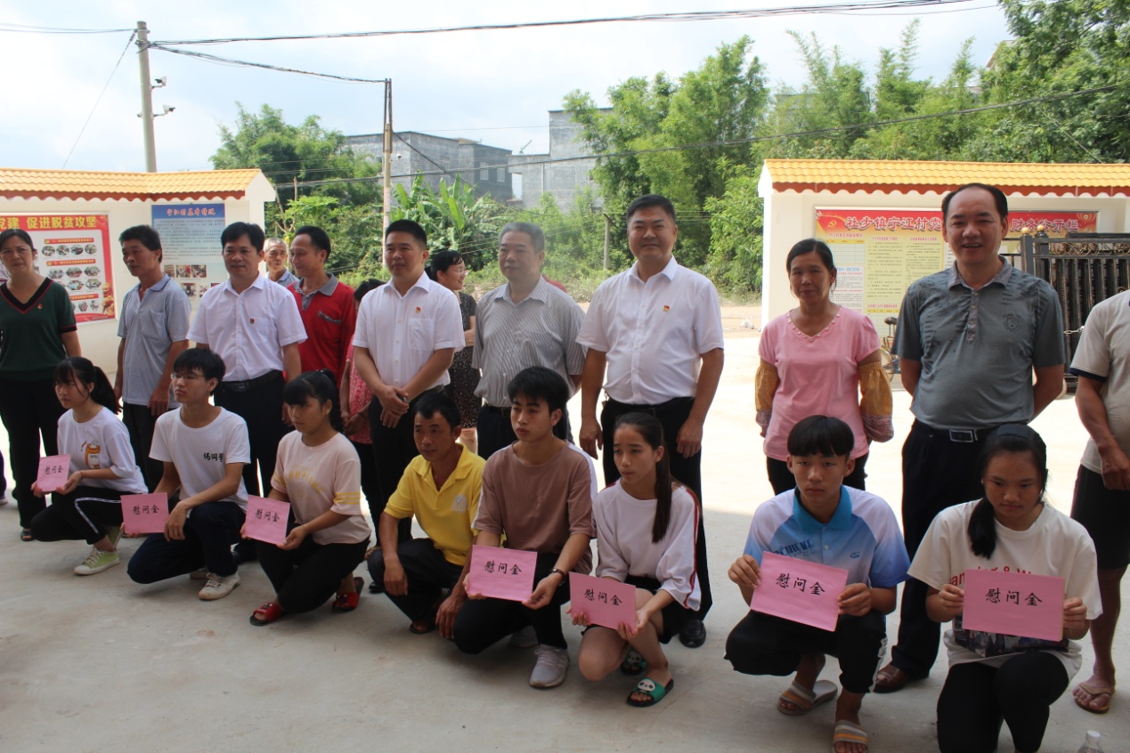 六月的宁江,正值初夏,万木葱茏,百花盛开。6月27日,在全国上下纪念中国共产党成立97周年之际,贵港市民政局、广西扬翔慈善基金会、广西道路运输协会在桂平市社步镇宁江村委隆重举行社会组织爱心捐赠暨“七·一”党员慰问活动,共商发展大计,共推脱贫攻坚。活动中,广西扬翔慈善基金会、广西道路运输协会为宁江村、社步村、良北村、新岭村等四个村的100多户贫困户130多名在读学生和宁江村米步屯水泥路项目捐助8.55万元。