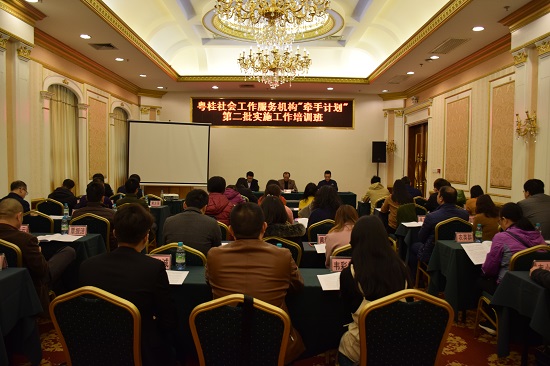 12月18日,粤桂社会工作服务机构“牵手计划”第二批实施工作培训班在南宁举办。自治区民政厅社会组织管理局、负责援派任务的广东省佛山市民政局、区内受援市县民政局有关同志,粤桂两省区20家受援机构和援派机构负责人参加培训。
