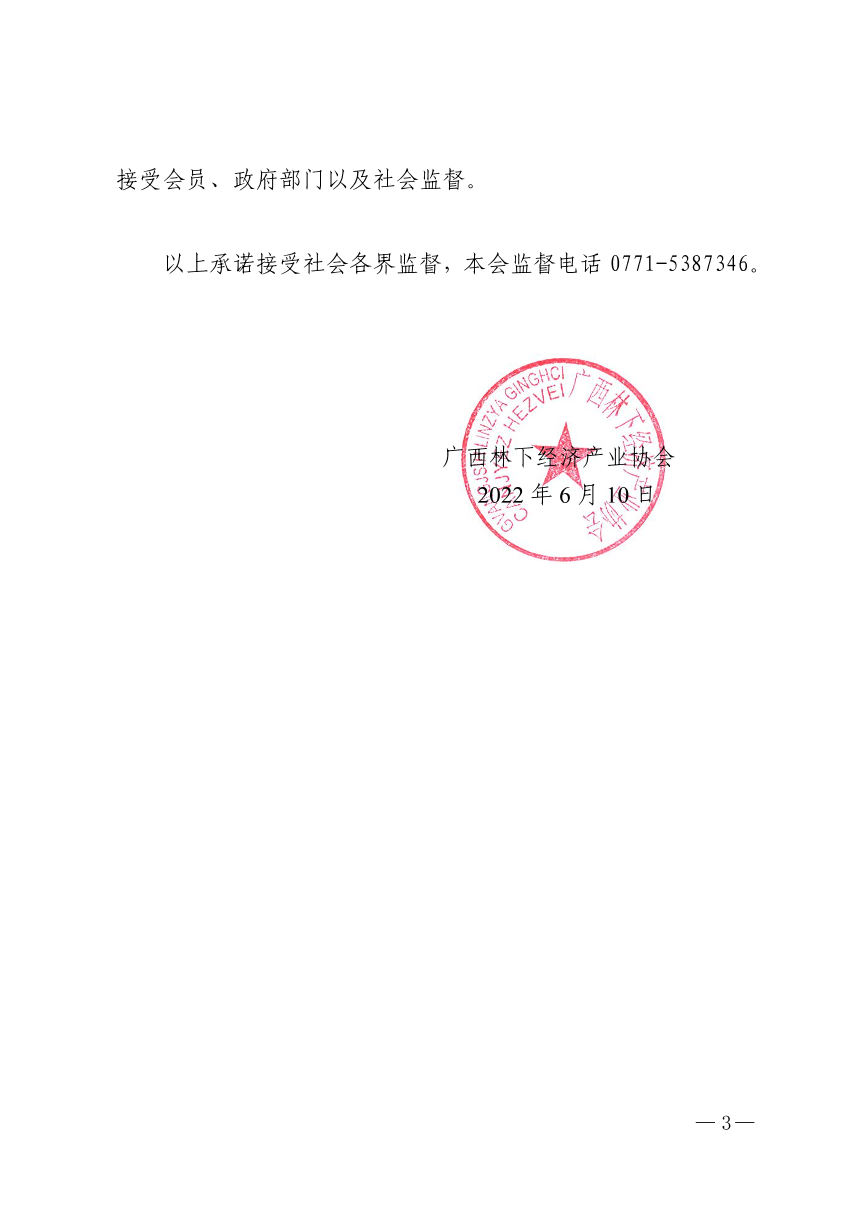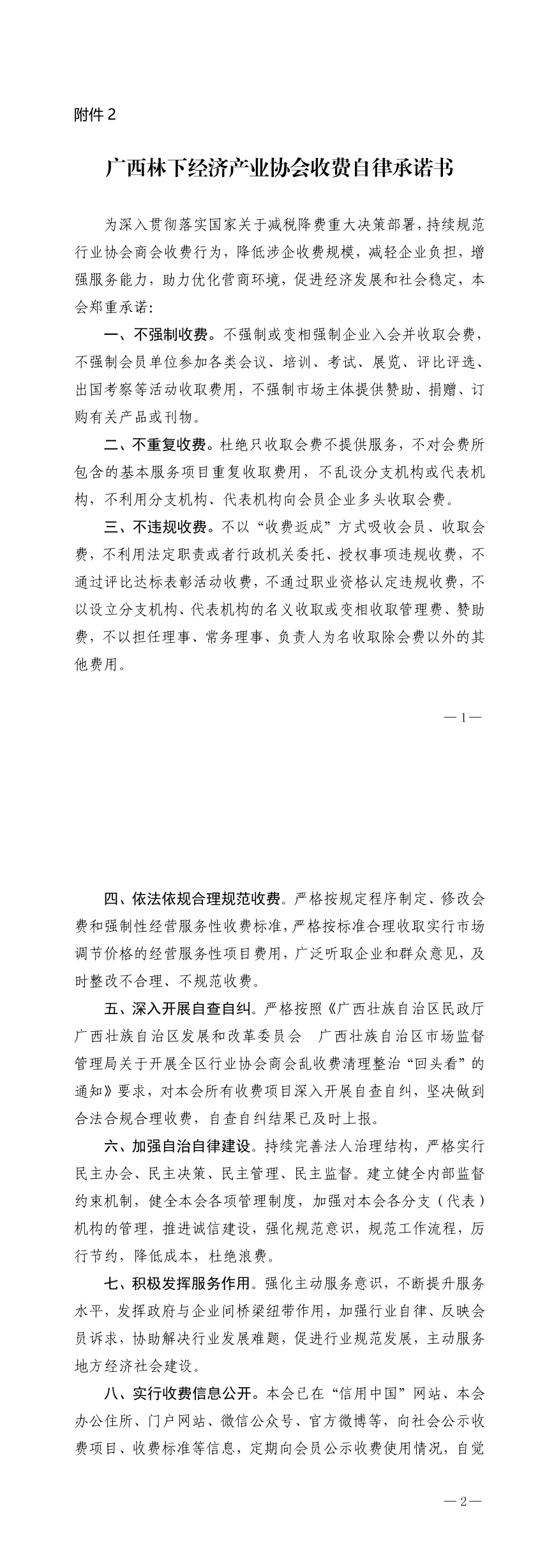 广西林下经济产业协会收费自律承诺书