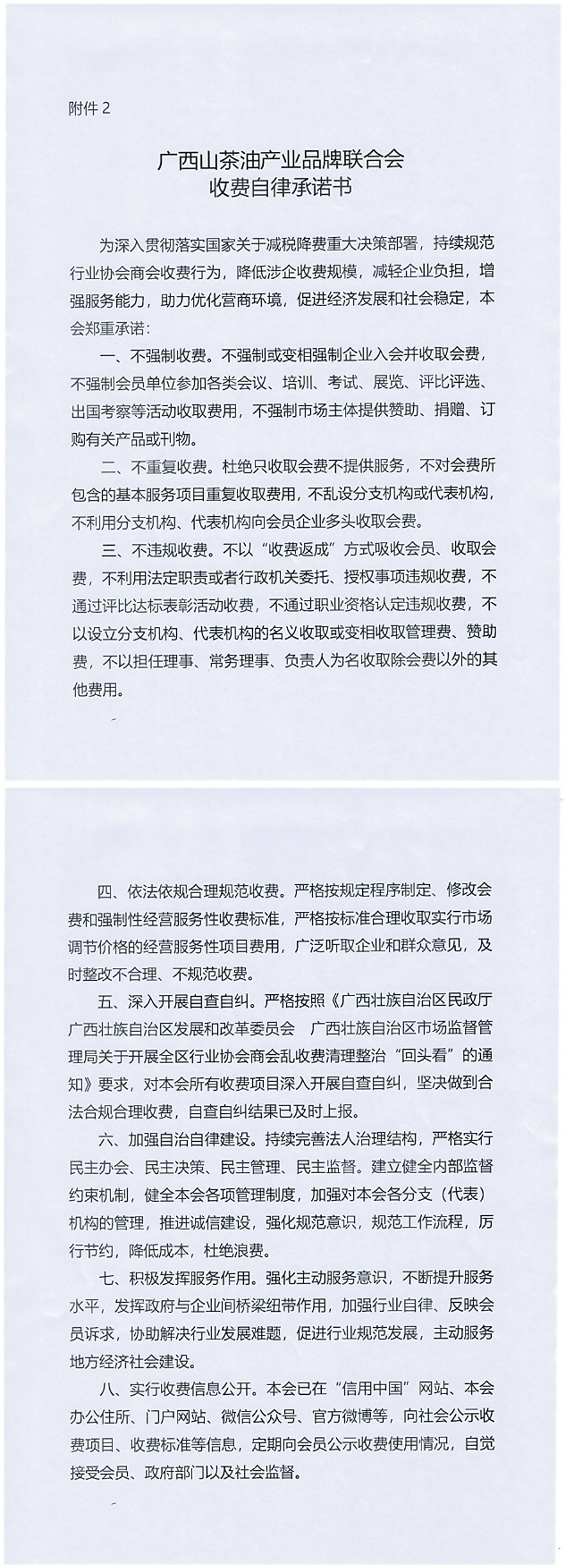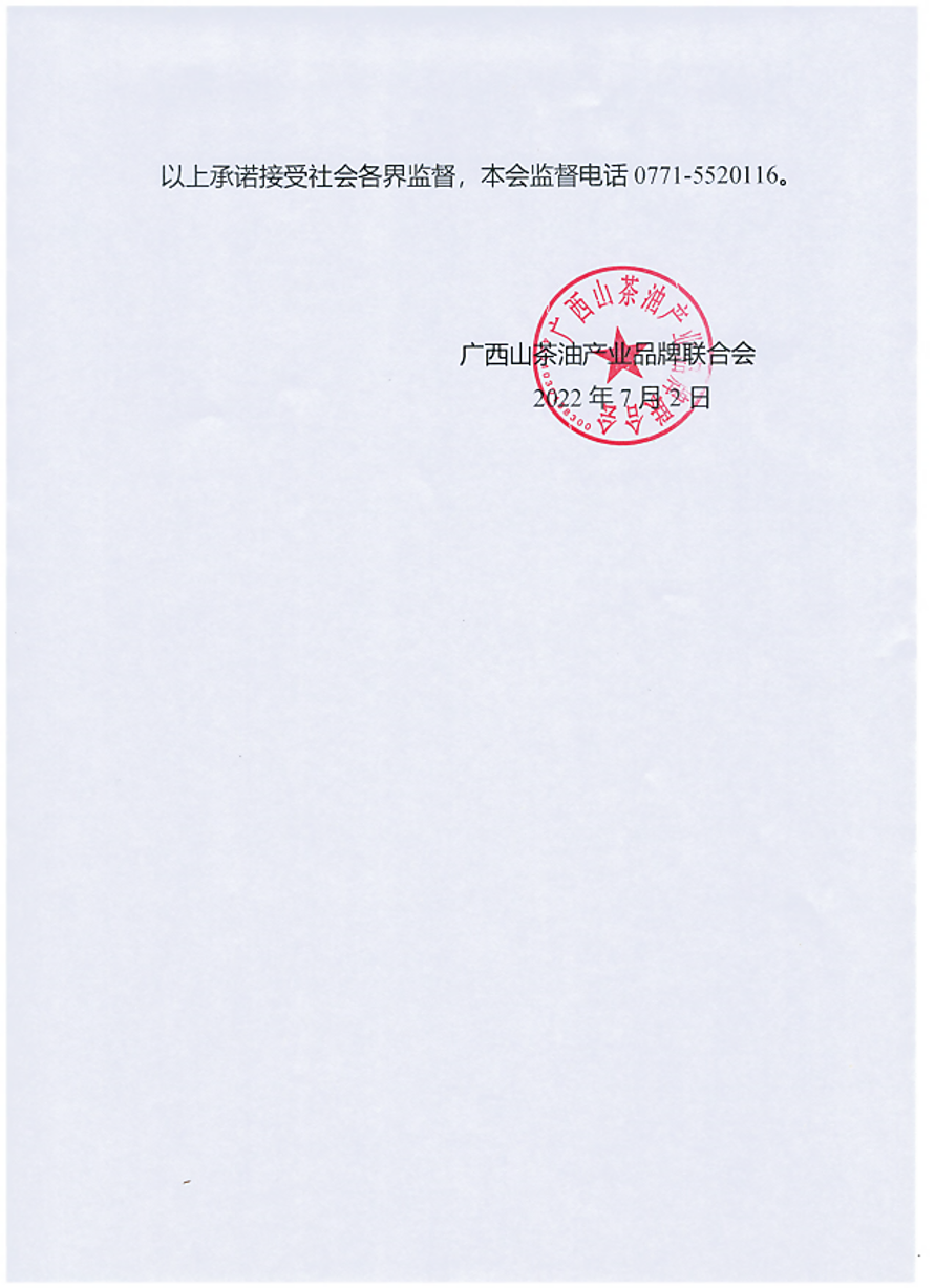 广西山茶油产业品牌联合会收费自律承诺书