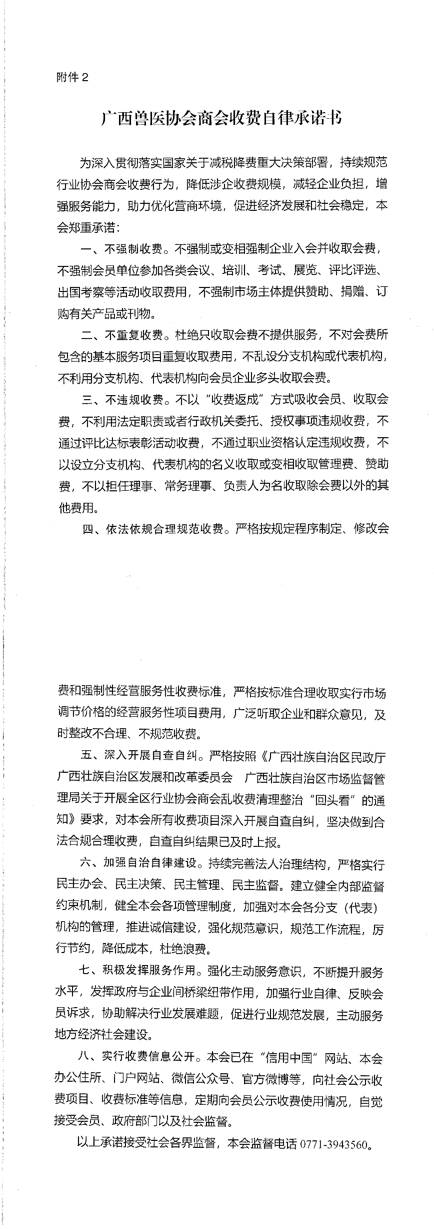 广西兽医协会收费自律承诺书