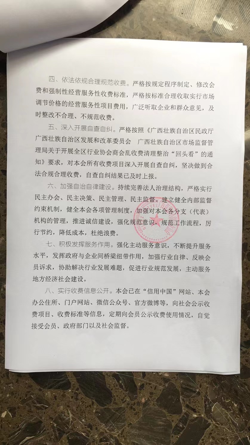 广西四川商会收费自律承诺书