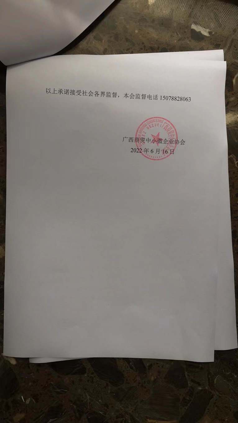 广西商贸中小微企业协会收费自律承诺书