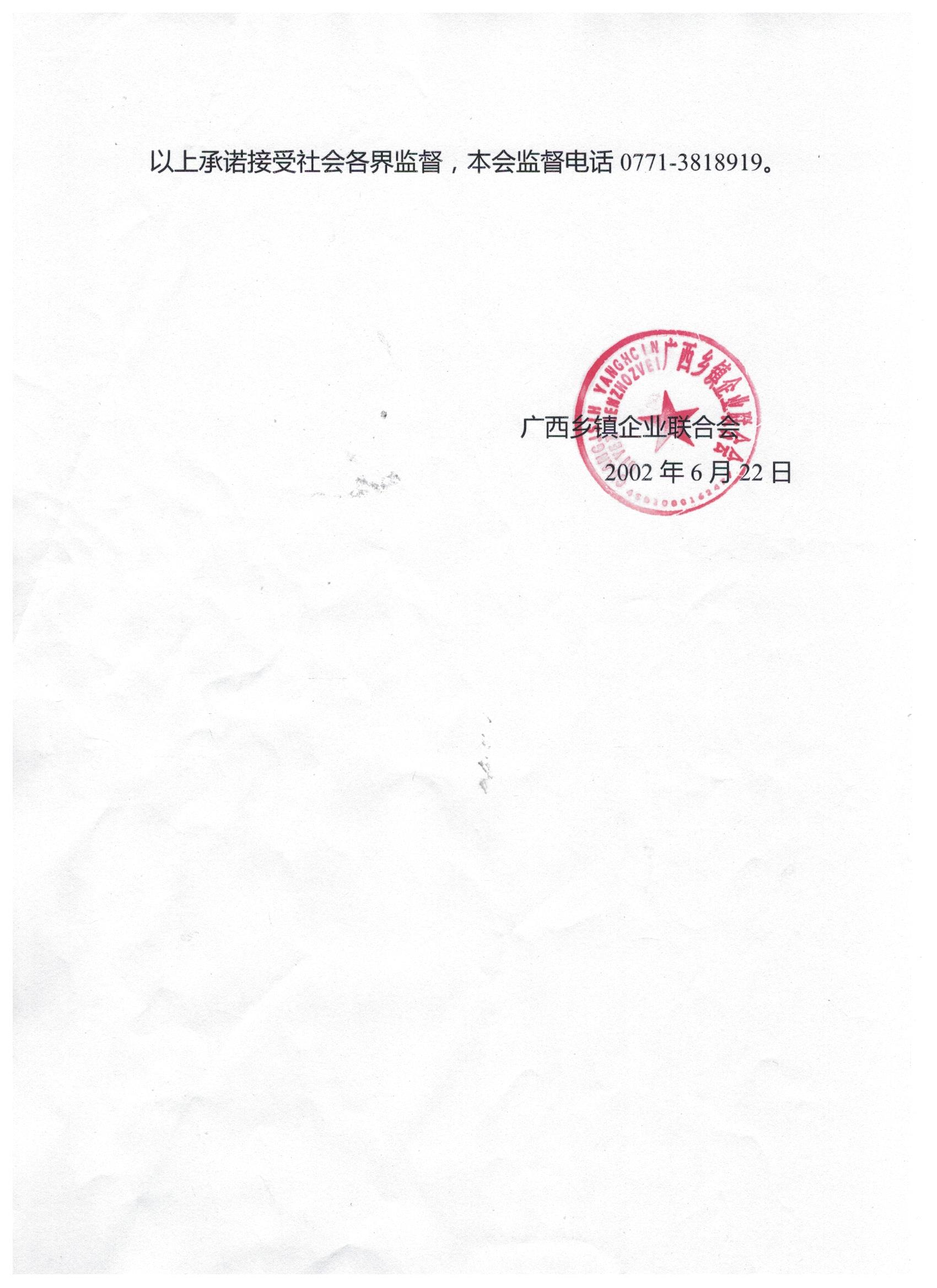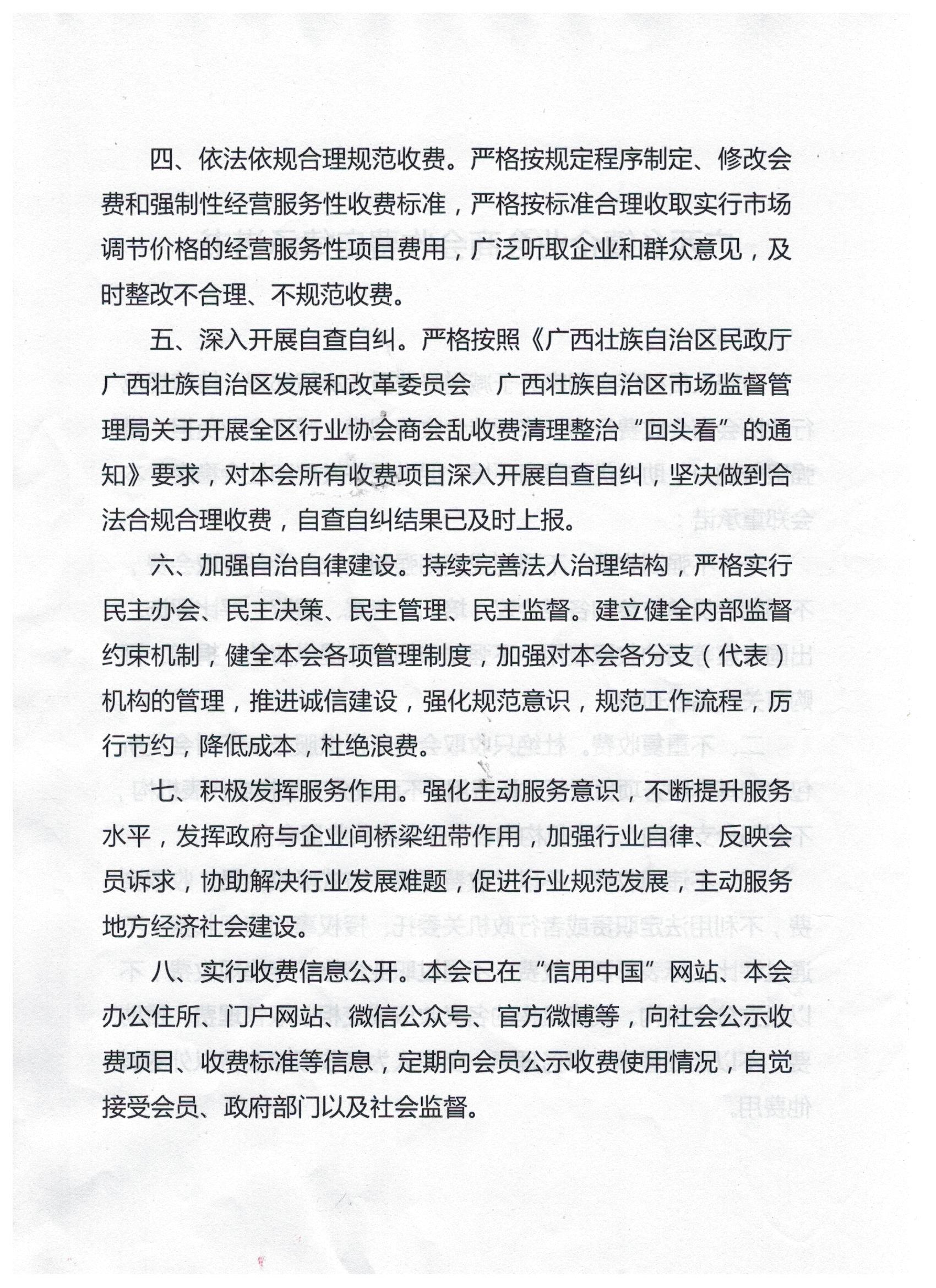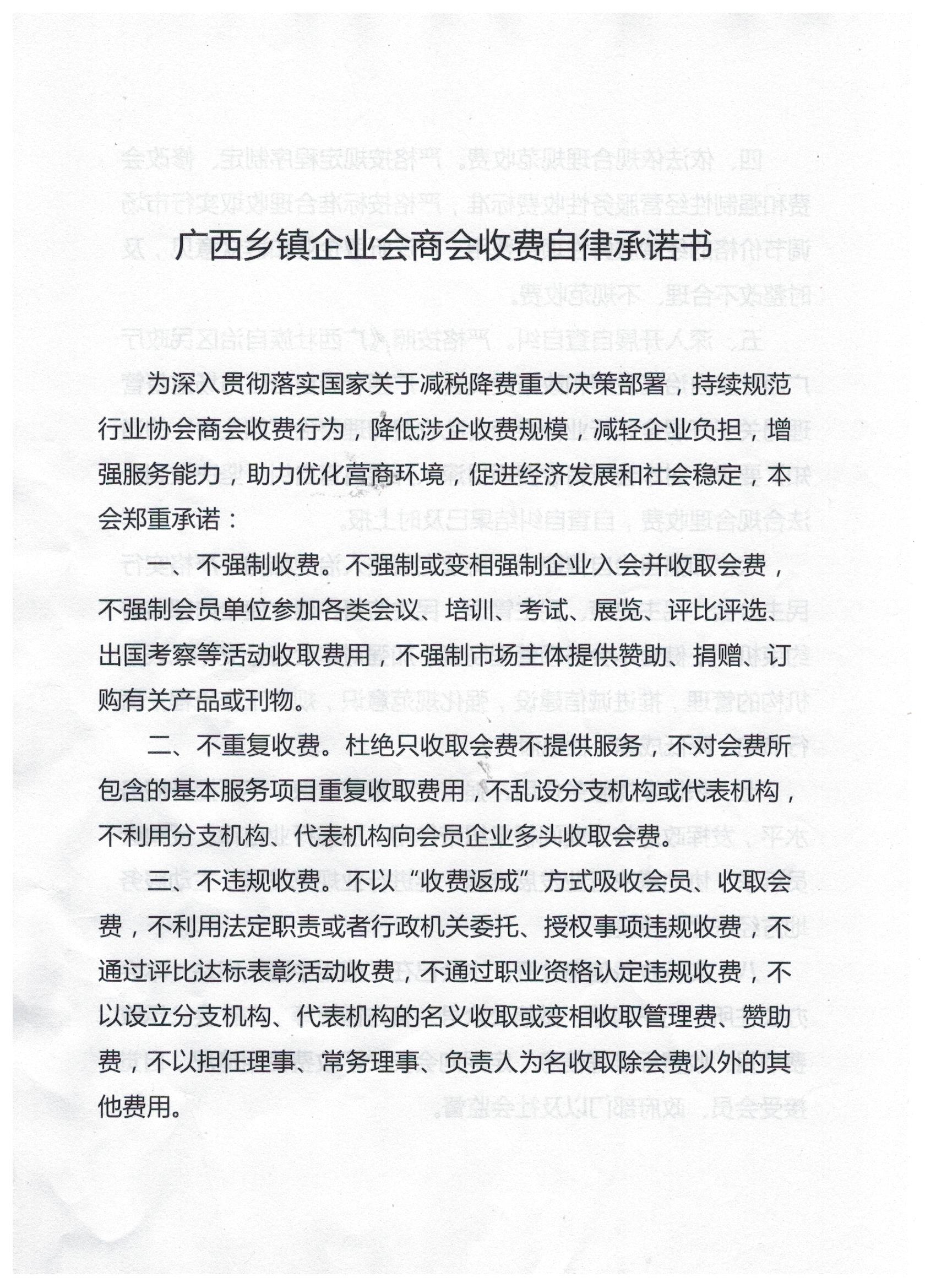 广西乡镇企业联合会收费自律承诺书