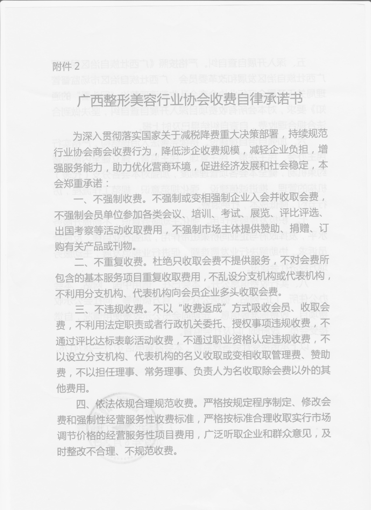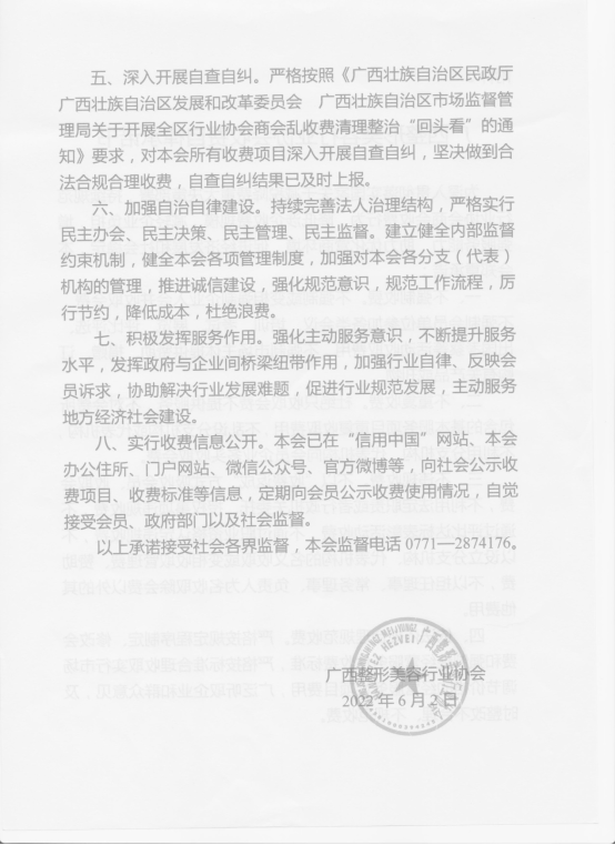广西整形美容行业协会收费自律承诺书