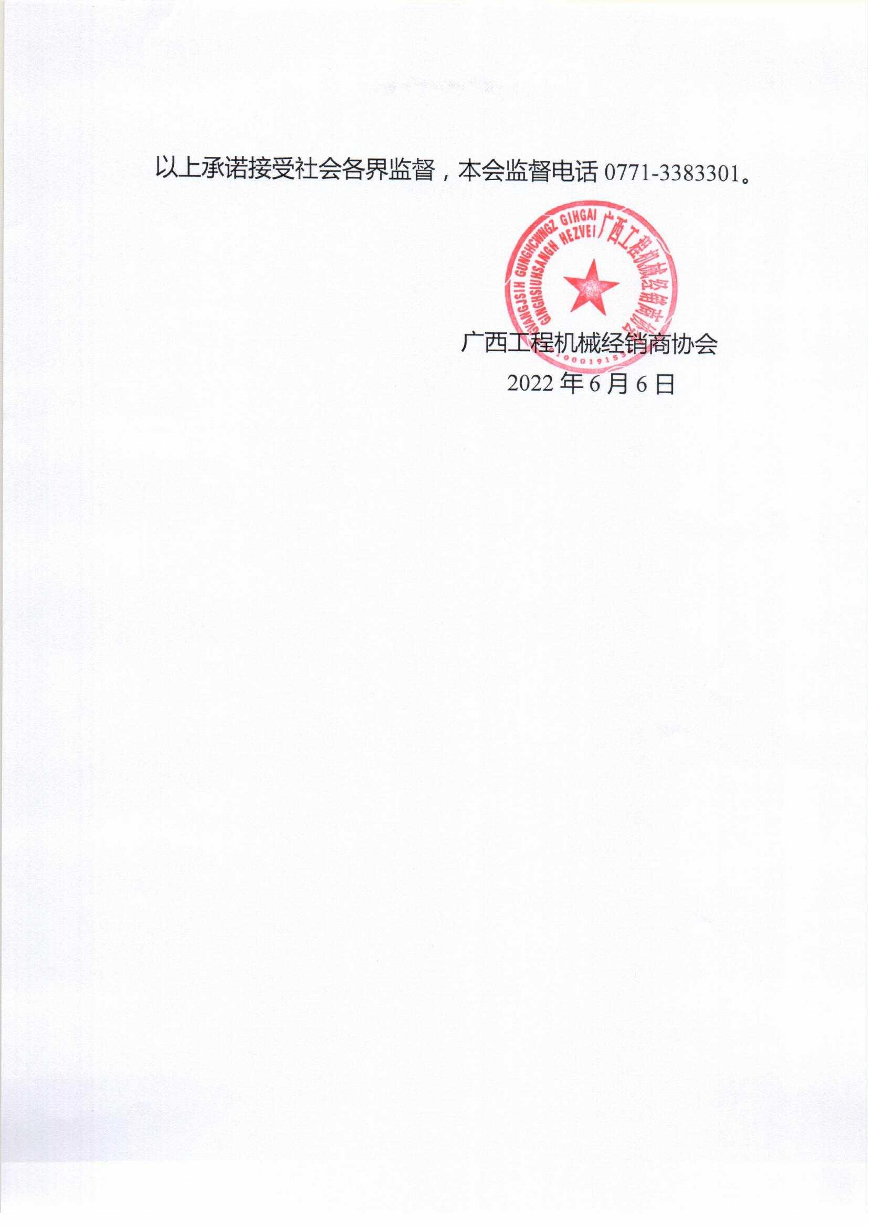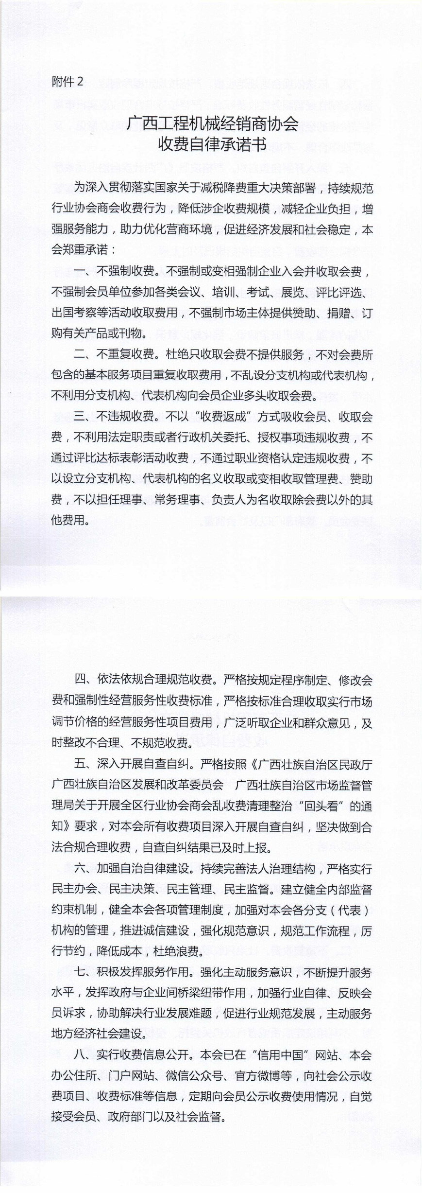 广西工程机械经销商协会收费自律承诺书
